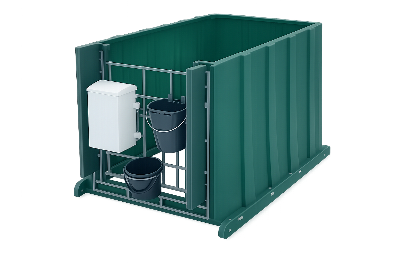 Профилакторий для телят выполнен в виде монолитного корпуса из первичного полиэтилена, что делает его надежным решением для организации индивидуального содержания телят.