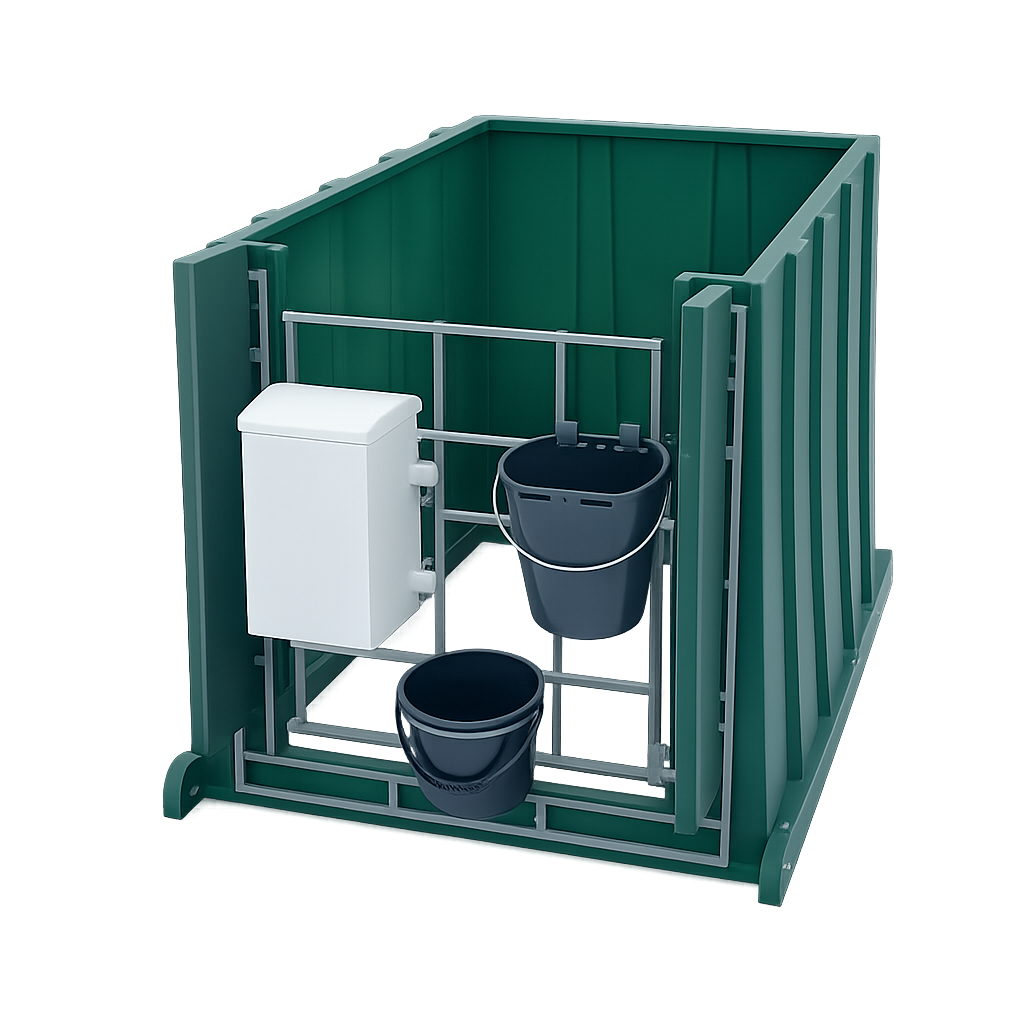 Неразборное исполнение повышает общую жёсткость конструкции и делает профилакторий для телят максимально удобным и долговечным в использовании.